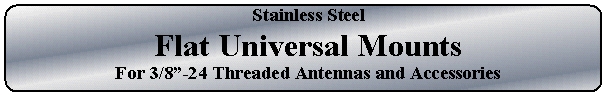 These mounts are our most popular stainless steel mounts for flat surface applications. Applications are, for the most part, limited only by your imagination. Some popular applications include flat mirror arms, rails, bars, or step bumpers. The bracket itself is about 4" (102mm) long by 1" (25mm) wide. Click here to see bracket dimension details. The supplied stainless steel mounting bolt is a hefty 3/8"-24 x 1" long and includes a stainless steel nut and washers. This mount may be used with antennas up to 4' (1.2m) long. The SS-124 mount is complete with our K-4 antenna stud while the SS-124A includes the screw-on style K-4A stud. WHERE TO BUY?
