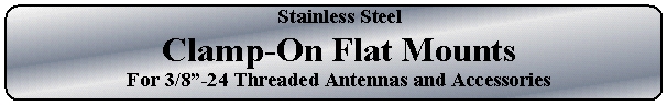 These stainless steel mounts were specifically designed to mount antennas on the flat side-view mirror arm supports commonly found on pick-ups. When used in this manner, there is no need to drill any holes in the vehicle or mirror support arm. Of course, either of these mounts can be used in other applications as well. The upper bracket is 4.6" (117mm) long by 1" (25mm) wide. The distance between the stainless steel clamping bolts (supplied) allows the mount to span material up to 1.4" (36mm) wide. If the lower clamp is omited, the upper bracket will also serve as a flat mount for installations with a horizontal surface to bolt it to. Each bracket comes complete with either the K-4 antenna stud or the K-4A antenna stud. For general use, we recommend that these brackets be used with antennas up to 4' (1.2m) in length. WHERE TO BUY?