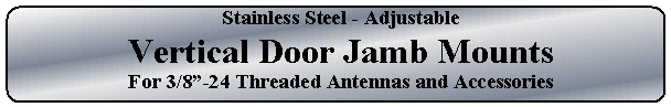 These mounts were specifically designed to allow antenna installations on vehicles where other mounts may not work. The primary goal was to offer a mount that could be affixed to a vertical inner door jamb such as that which might be found on the rear or side door of a cargo type van. Since the mounting screws are meant to be on the inner edge of the jamb, visible holes in the vehicle body are eliminated. Like many other Firestik mounts, the versatility of these mounts go well beyond their targeted use. When you hold this mount in your hand you will start to recognize all of the mounting possibilities. Chances are, you will find several locations to mount it on your vehicle. For antennas up to 4ft in length. In order to give you many years of trouble free use, the bracket parts and mounting hardware is made of stainless steel. The bracket is 1.5" (38mm) wide and has a 2" (50mm) reach for mounting inside the door jamb. Overall, the mount is 4.2" (105mm) long. In order to compensate for the door jamb angles, the stud bracket will swivel a full 180 degrees, 90 in each direction. This adjustment feature will let you mount the antenna on either the left or right side of the vehicle. Includes four #12 x 1/2" Philips panhead stainless steel sheet metal screws (use a #20, 0.161" drill for the screw pilot holes) Click here to see main bracket dimension details. Click here to see swivel bracket dimension details. We have two models for you to choose from; The SS-204 includes our K-4T2 antenna stud mount. Accordingly, it is fully compatible with coax cables that are terminated with ring terminal connections or those that are unprocessed at the mount end. In case of the later, we do supply all of the required ring terminals with this mount. The SS-204A includes the K-4A, SO-239 base antenna stud mount. If the mounting situation allows for the required space to use a screw on coax connector (PL-259) on the mount end of the coax, this is the mount to choose. WHERE TO BUY?