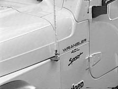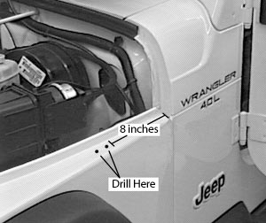 Note: The rearward part of the fender on newer Jeeps does not have the same support that was found in earlier models. On these vehicles we recommend that the bracket be mounted at least 8-inches (20cm) forward of the rear edge of the fender where it has sufficient support. If this is not followed, or if the rear part of the fender is not given additional support, the fender, dependent upon the antenna size, will flex from any whipping action of the antenna. See the following for guidance.