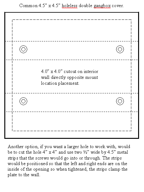 Are You Climbing The Walls? Over the years, and still today, we hear from RV owners who tell us that the bolts we supply with some of our side mounts are too short to make it from the outside wall to the inside wall. The ones we hear from before the installation are the lucky ones. If you want to span the double panel walls of an RV, there is a good chance that you will be one "unhappy camper" in the months and years to follow. If you span the interior and exterior walls of a composite material RV (fiberglass, etc), when you tighten up the bolts or nuts that hold the mount in place you can almost be guaranteed that the inside and outside wall is going to be distorted. And that isn't the end of the problems. After a short time the material will get "comfortable" with its new position and the tension of the bolts will slack off. The bumps, wind load and vibrations of normal driving will then cause the holes drilled in the material to become elongated. So, you tighten the bolts/nuts even further and the distortion increases. The process repeats itself until you finally crack the outer skin of the vehicle or pull the bolt heads or nuts through the inside wall. If you have a double panel wall and are considering a side mount you have three options. 1) Find an interior wall support and either affix the mount on it or just off to the side of it. 2) Use plastic PVC tube or equivalent stand-offs that fill the gap between the inner and outer walls. 3) Make an access hole on the inside wall, perhaps inside a cabinet, and bolt the mount directly to the outer skin. Both options 2 & 3 require access to the space between the walls. Keep in mind that composite materials do not provide the ground plane that standard 2-way radios require. You should not confuse chassis ground with ground plane. Composite (non-metal) vehicles require antennas systems designed for no-ground-plane (NGP) environments. Also, mount your antennas so that 60% or more of their length is above the roof, regardless of what length the antenna is that is being installed. Lastly, never alter the length of an NGP coax assembly. These are tuned devices. If you need additional length to reach the radio, use a common barrel connector and a section of coax (9ft or multiples recommended) with PL-259's on both ends between the radio and the NGP coax. ** 2 MORE PAGES FOLLOW **For your convenience, we have provided two interior wall, antenna mount access hole ideas for your consideration. |